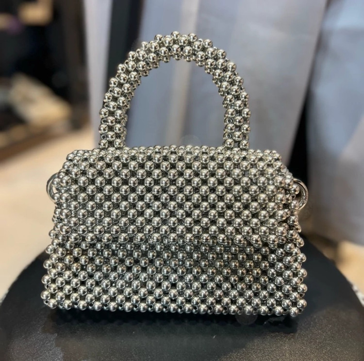 مینی بگ مرواریدی وارداتی سیلور جذاب همراه با یک زنجیر بلند تقدیمتون میشه 👌😍